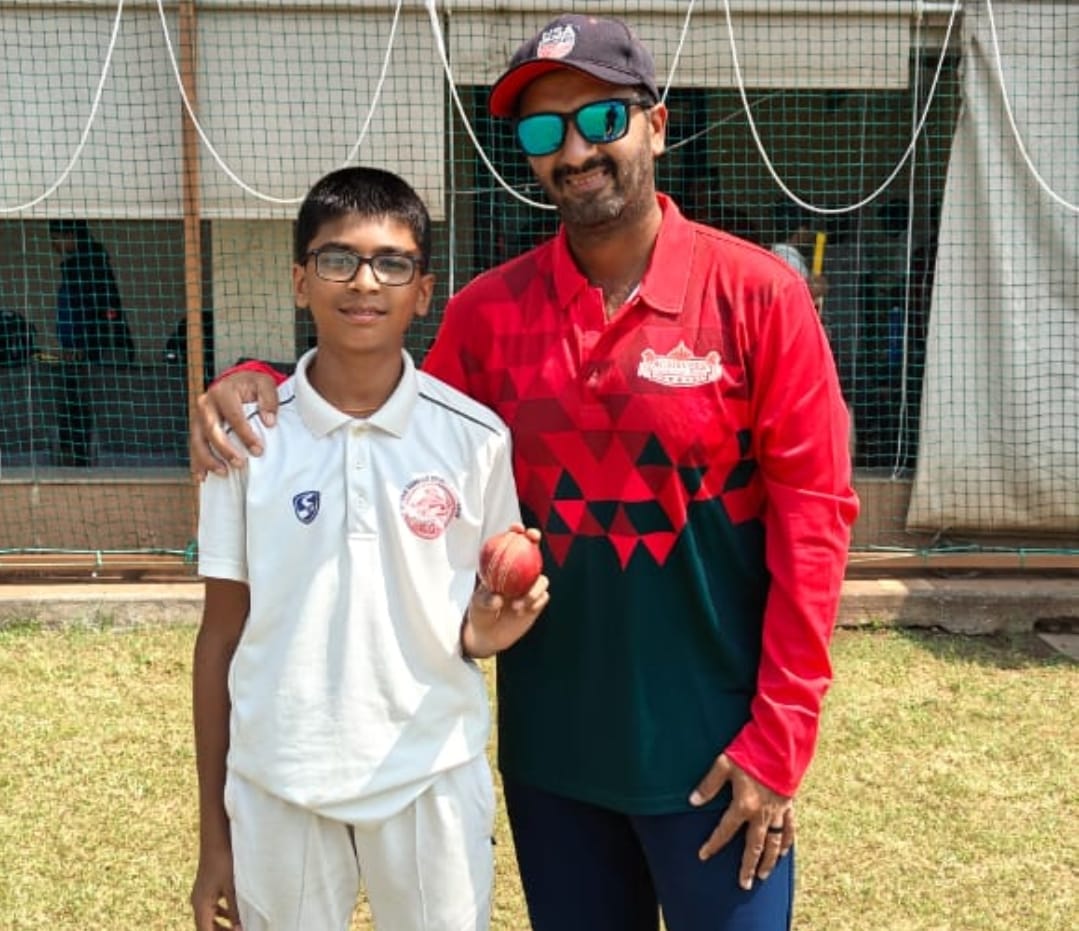 Played at PJ Hindu Gymkhana in Mumbai, Mayavanshi CC opting to bat first were cleaned up for 35 runs courtesy a bowling masterclass by Mumbai U14 Probabled Krish Patil. Krish who trains at Achievers Cricket Academy in Mumbai returned with exceptional bowling figures of 9/20 in 6 overs including a maiden.