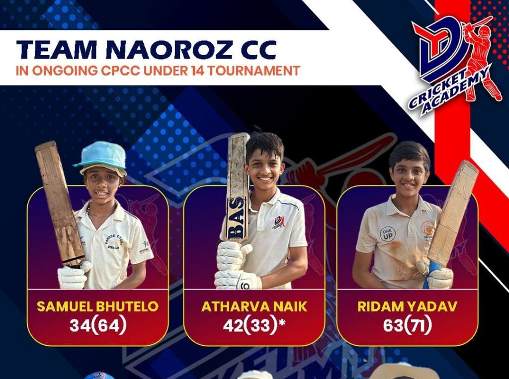 Navroz Cricket Club opting to bat first at Azad Maidan in Mumbai made a total of 217/6 in 45 overs. Middle order batters did an excellent job bringing their team back into the game. Samuel Bhutelo scored 34 off 64 balls followed by Captain Ridam Yadav scoring 63 off 71 balls coming in at no.5 while being well supported by Atharva Naik who scored 42* at no.6.