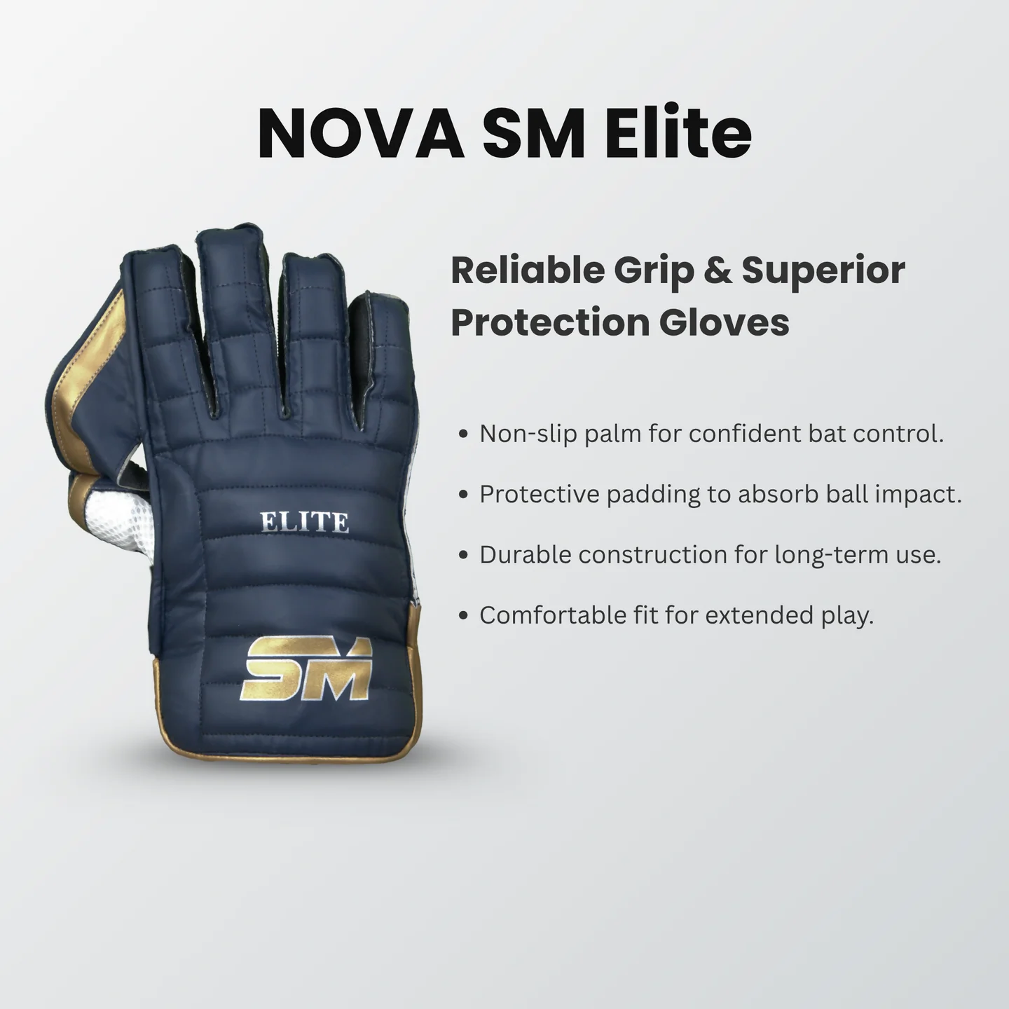 Built for keepers who control the game from behind the stumps, the NOVA SM Elite Wicket Keeping Gloves deliver unmatched grip, protection, and confidence at elite levels of play.